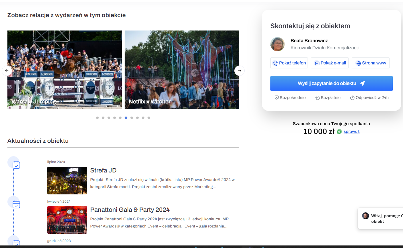 Dodając realizację, możesz wskazać obiekt jako miejsce jej wykonania. Dzięki temu Twoja realizacja będzie widoczna w profilu obiektu na konferencje.pl, jednocześnie wzmacniając Twój wizerunek eksperta współpracującego z tym miejscem